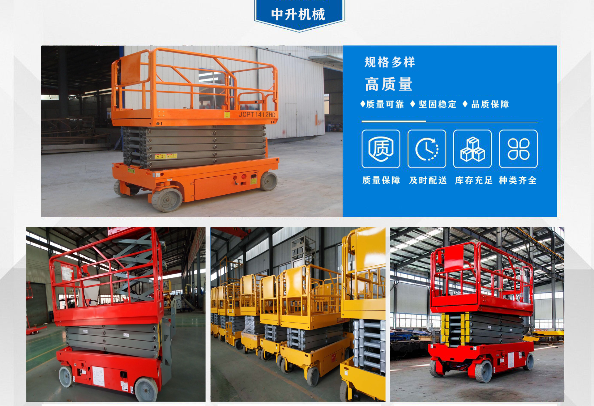 濟南中升機械制造有限公司主營自行式升降機,自行走升降機,自行式升降平臺,移動升降平臺,移動式升降平臺等產品,產品廣泛用于廠房維護、工業安裝、設備檢修、物業管理、倉庫、航空、機場、港口、車站、加油站、體育場、展覽館等多種行業和場所,  公司設備精良、工藝合理、檢測手段齊全,技術力量充足,公司創立伊始即本著“專注、專心”的經營理念,依托技術團隊優勢和設備硬件保障,全力打造良心的升降平臺企業。  我公司始終以“品質為本,服務至上”作為企業宗旨。只要你訂購了我公司的產品,無論你身處何方,我們都會及時派出技術人員為你服務!...